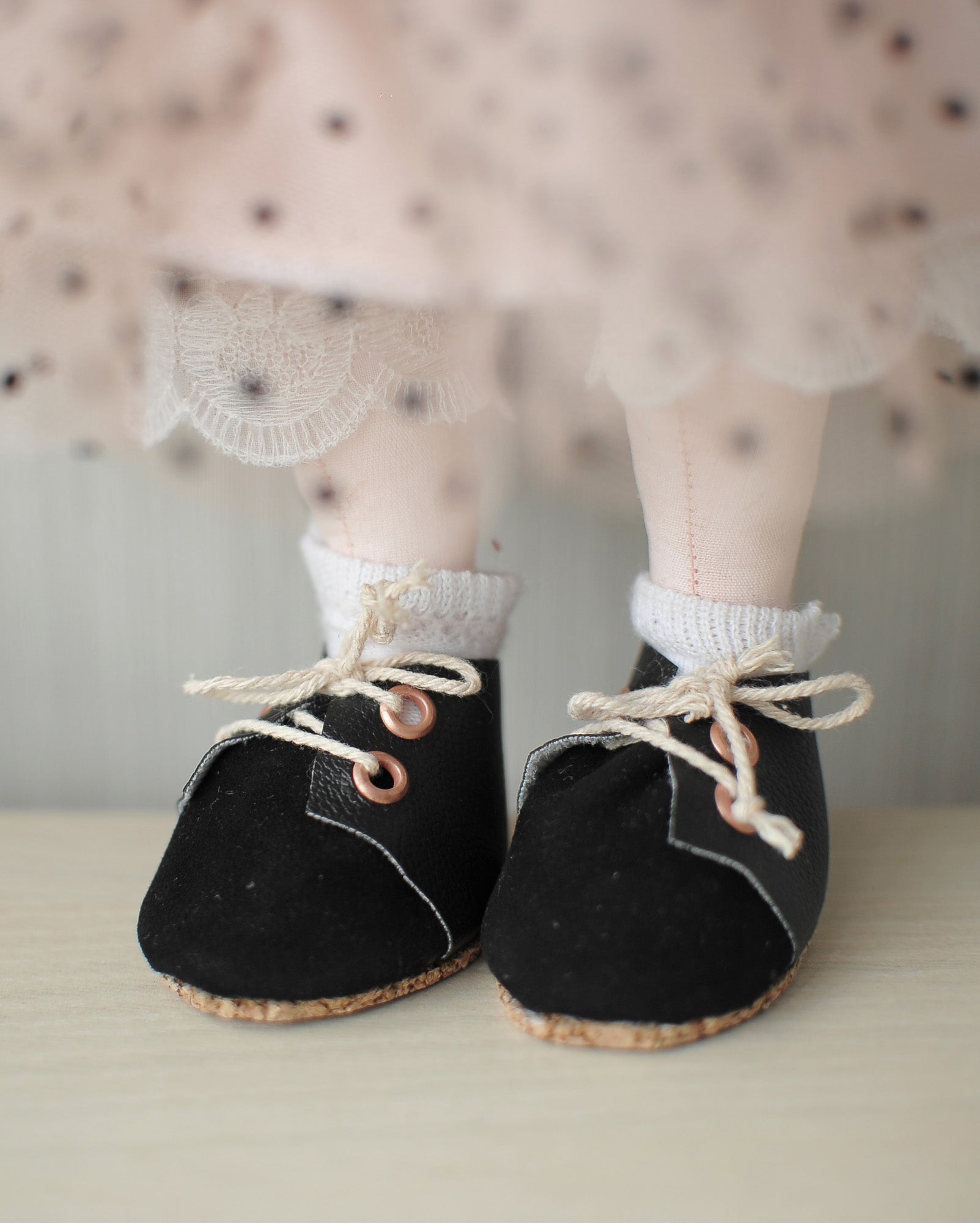 Complete your doll's outfit with these leather and ecological leather shoes crafted in our workshop. Made with high quality materials, they provide a realistic and stylish touch to any doll's wardrobe.