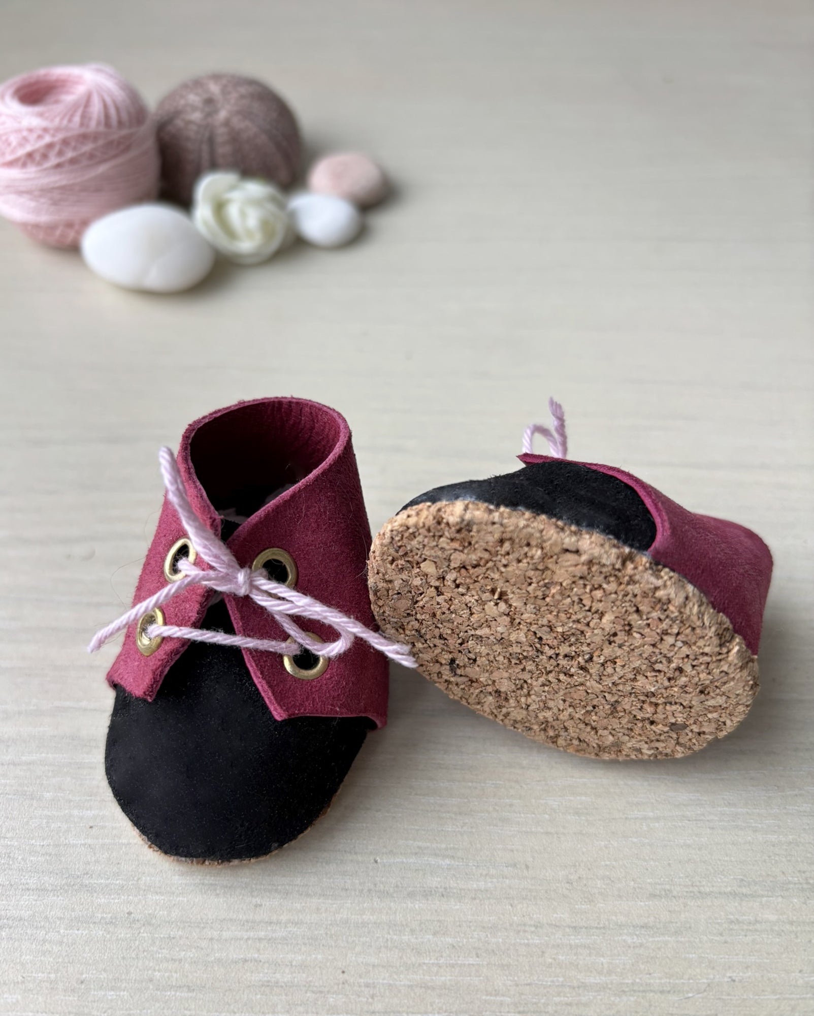 Complete your doll's outfit with these leather and ecological leather shoes crafted in our workshop. Made with high quality materials, they provide a realistic and stylish touch to any doll's wardrobe.