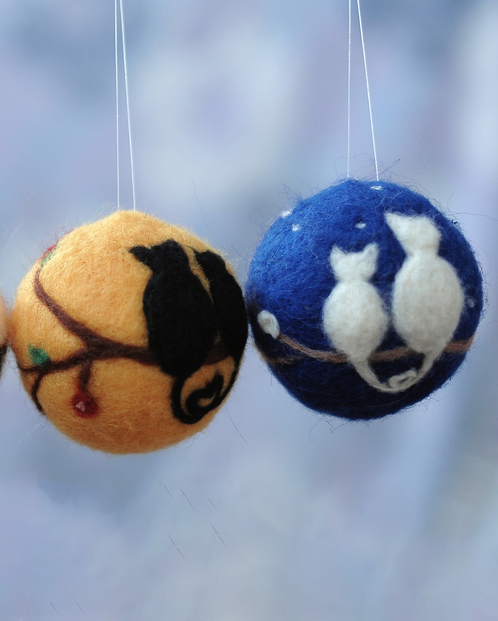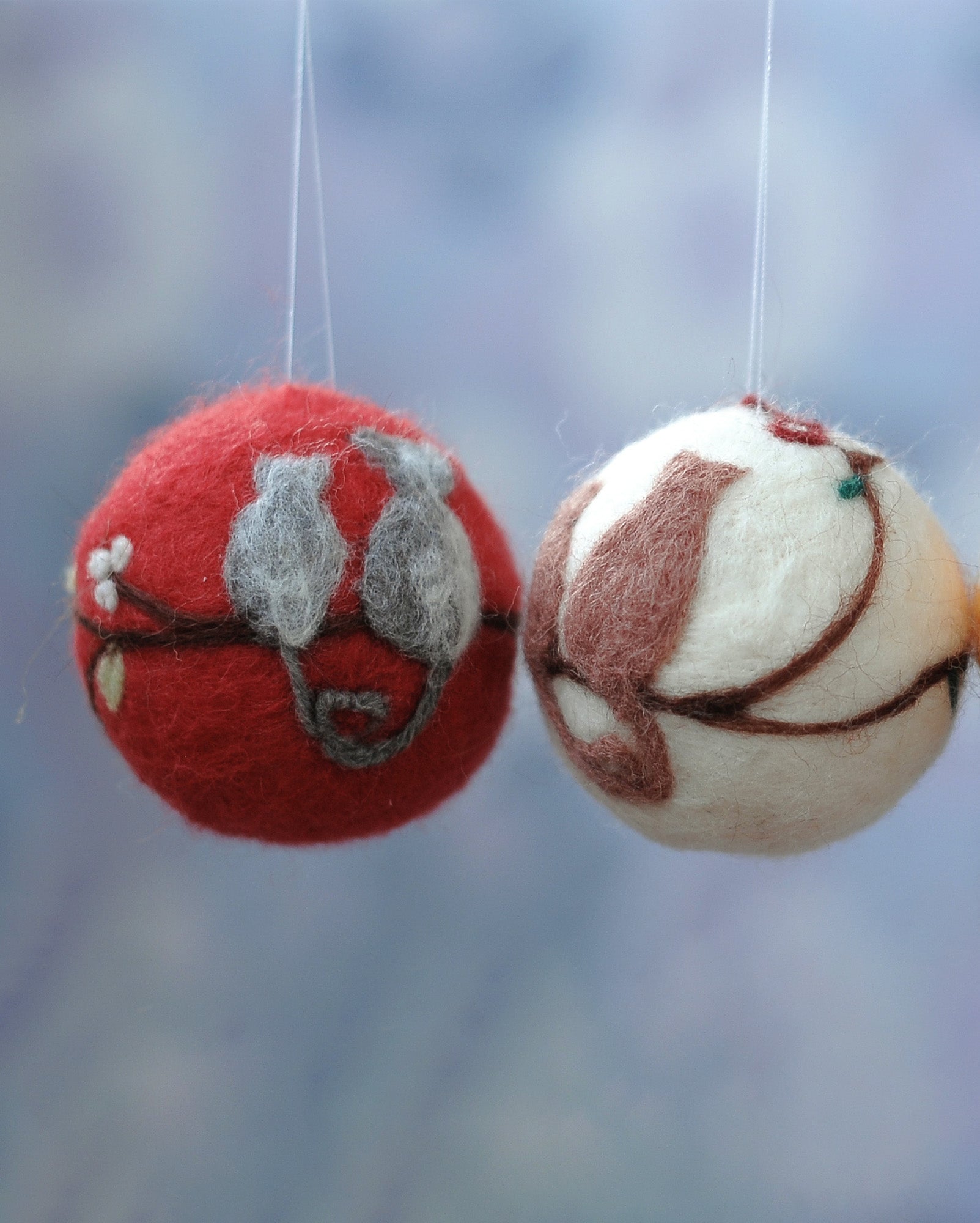* They are made of merino wool. I used a foam ball and crafted the wool around it