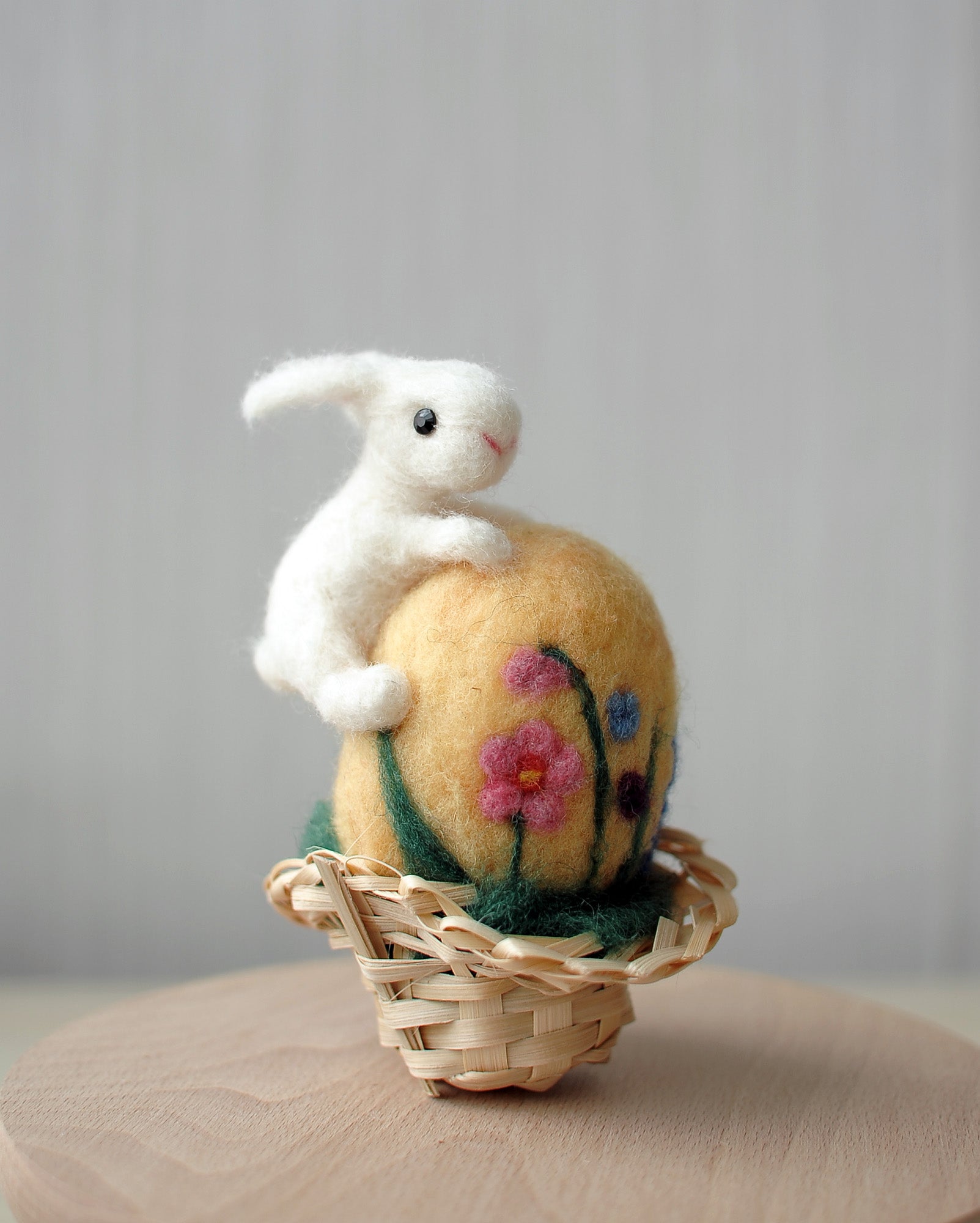 Crafted from high-quality Merino wool, this handmade needle felted Easter bunny and egg ornament adds a touch of delight to your home and table. Each one-of-a-kind figurine can be customized to your liking, ensuring a unique and special addition to your Easter celebrations.
